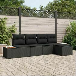 vidaXLvidaXL Zestaw 5-elementowy sofa ogrodowa z poduszkami Black Poly Rattan Acacia
